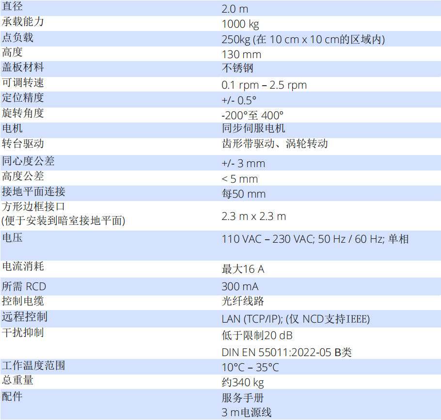 转台 TT 2.0 S1 专为半电波暗室中的嵌入式安装而设计。承载板采用不锈钢材料制成。